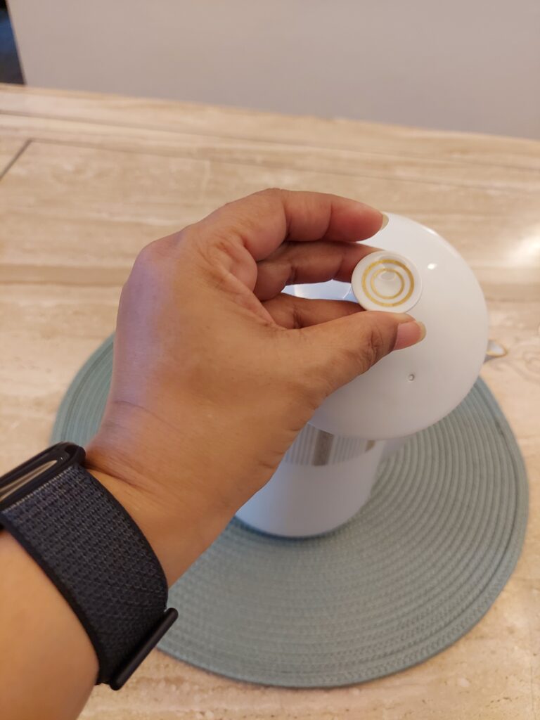 #lid : fitted dome with gold tipped knob, sits snugly to prevent spills